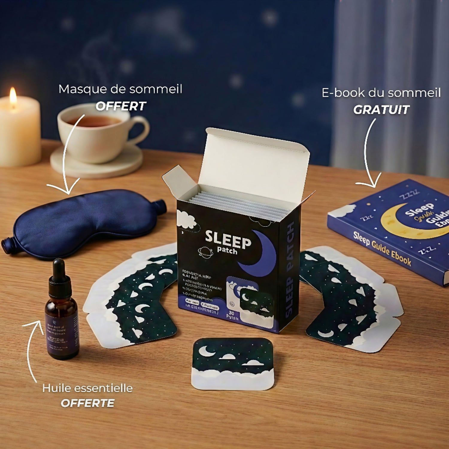 Laissez-vous tomber dans le sommeil en quelques minutes. Nos patchs naturels apaisent votre esprit, calment vos nuits et réduisent les réveils. Enfin des nuits continues… et le bonheur simple de se sentir vraiment reposé.